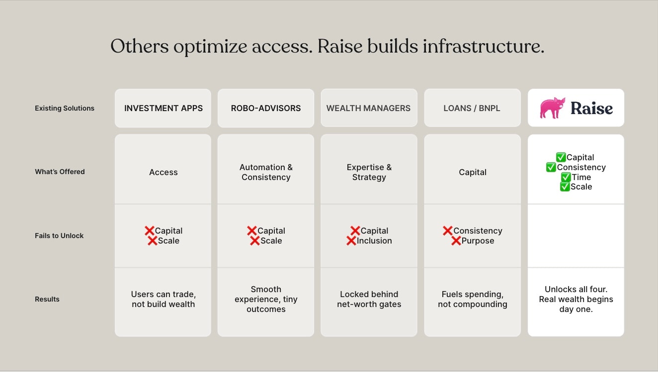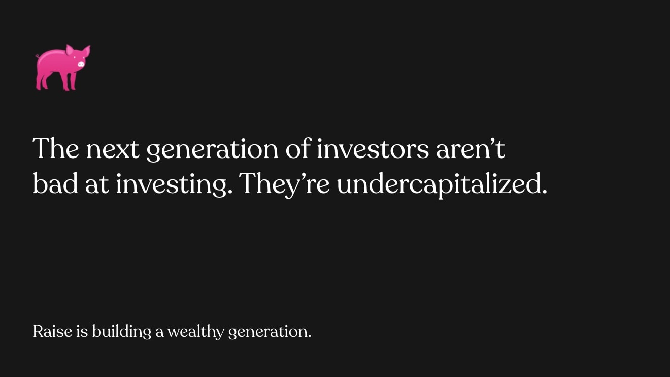 Raise Financial helps young investors gain early exposure to market returns by solving the access-to-capital gap.
